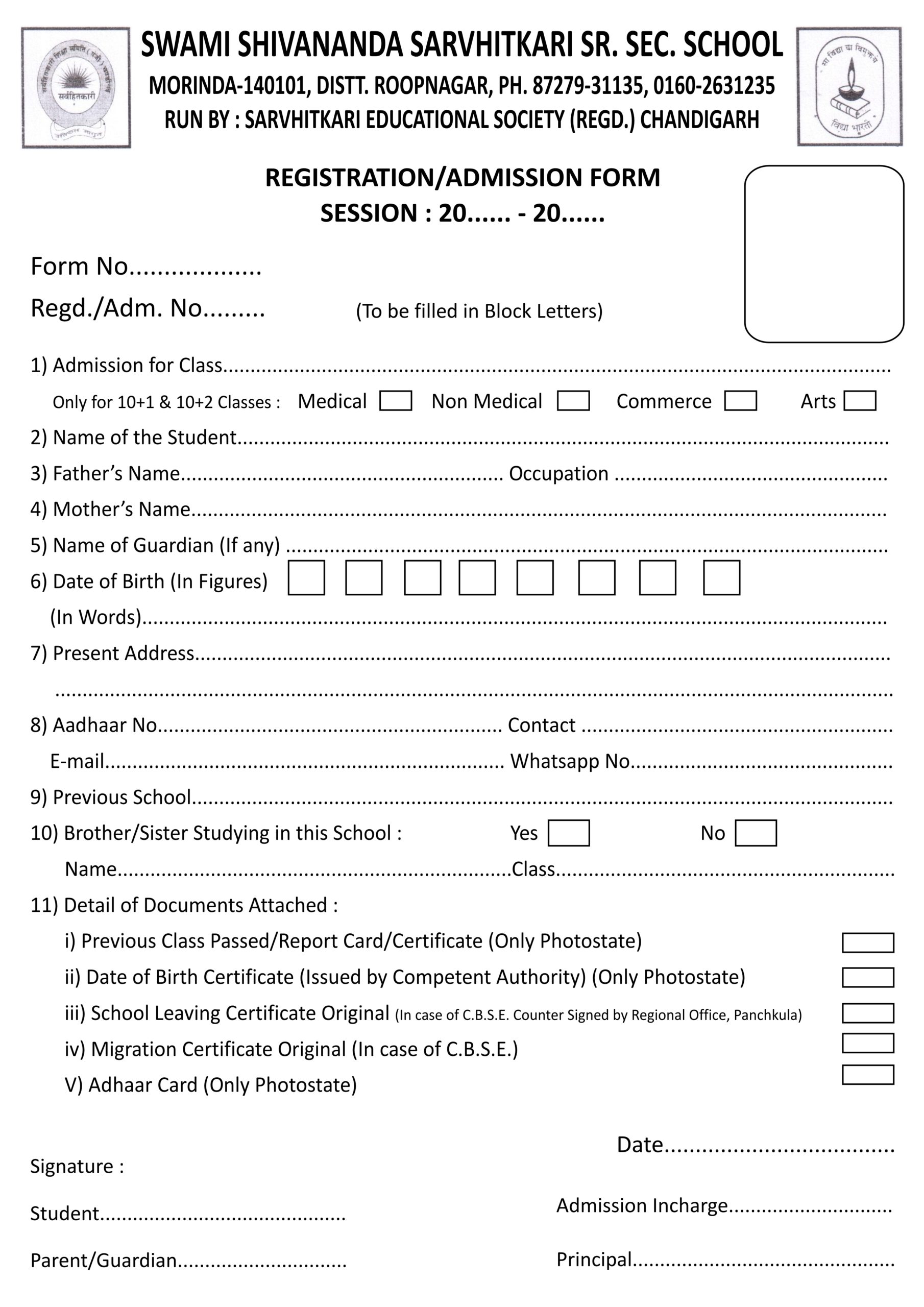 Admission Form