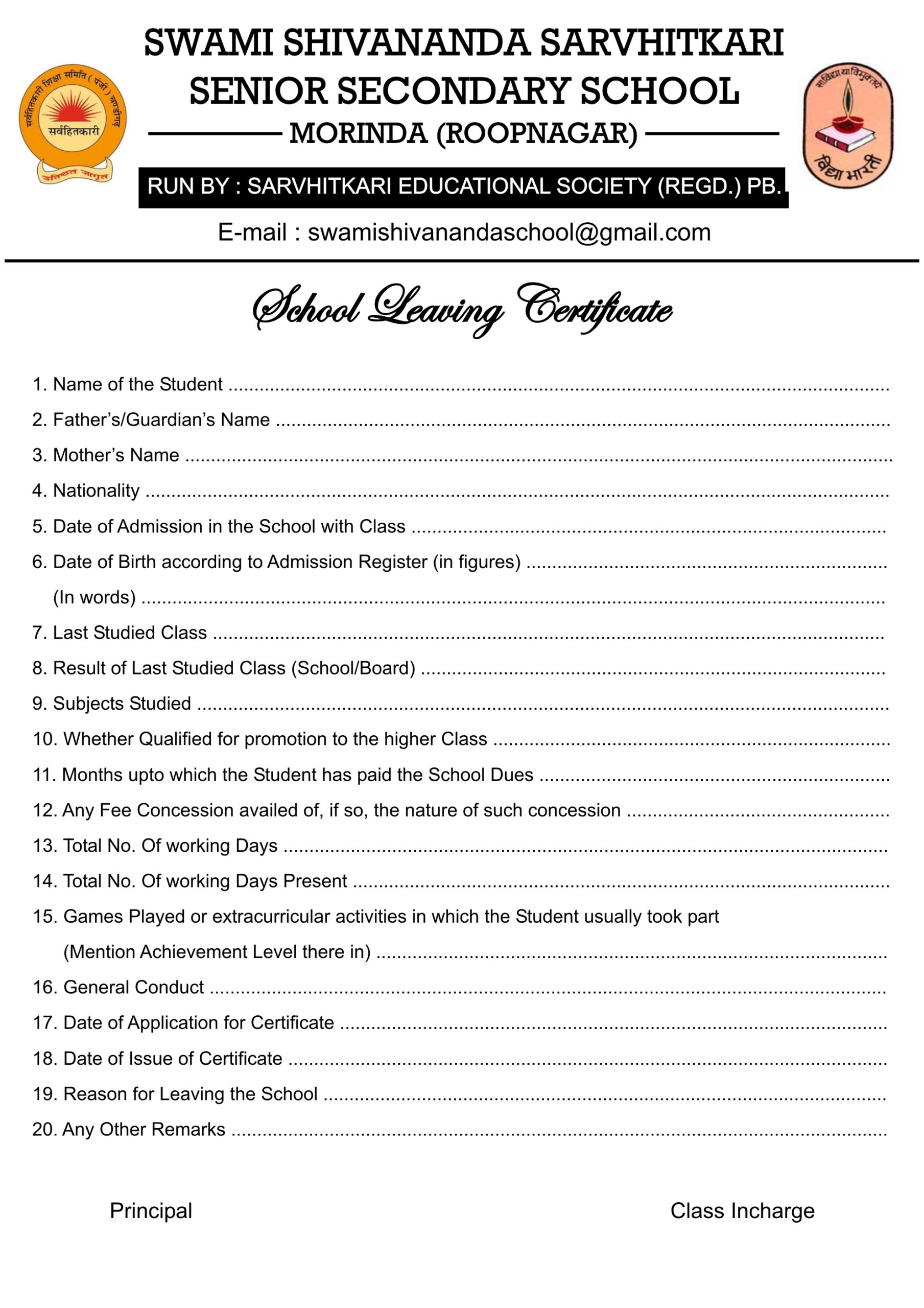 Swami Shivananda Sarvhitkari Sr. Sec. School, Morinda