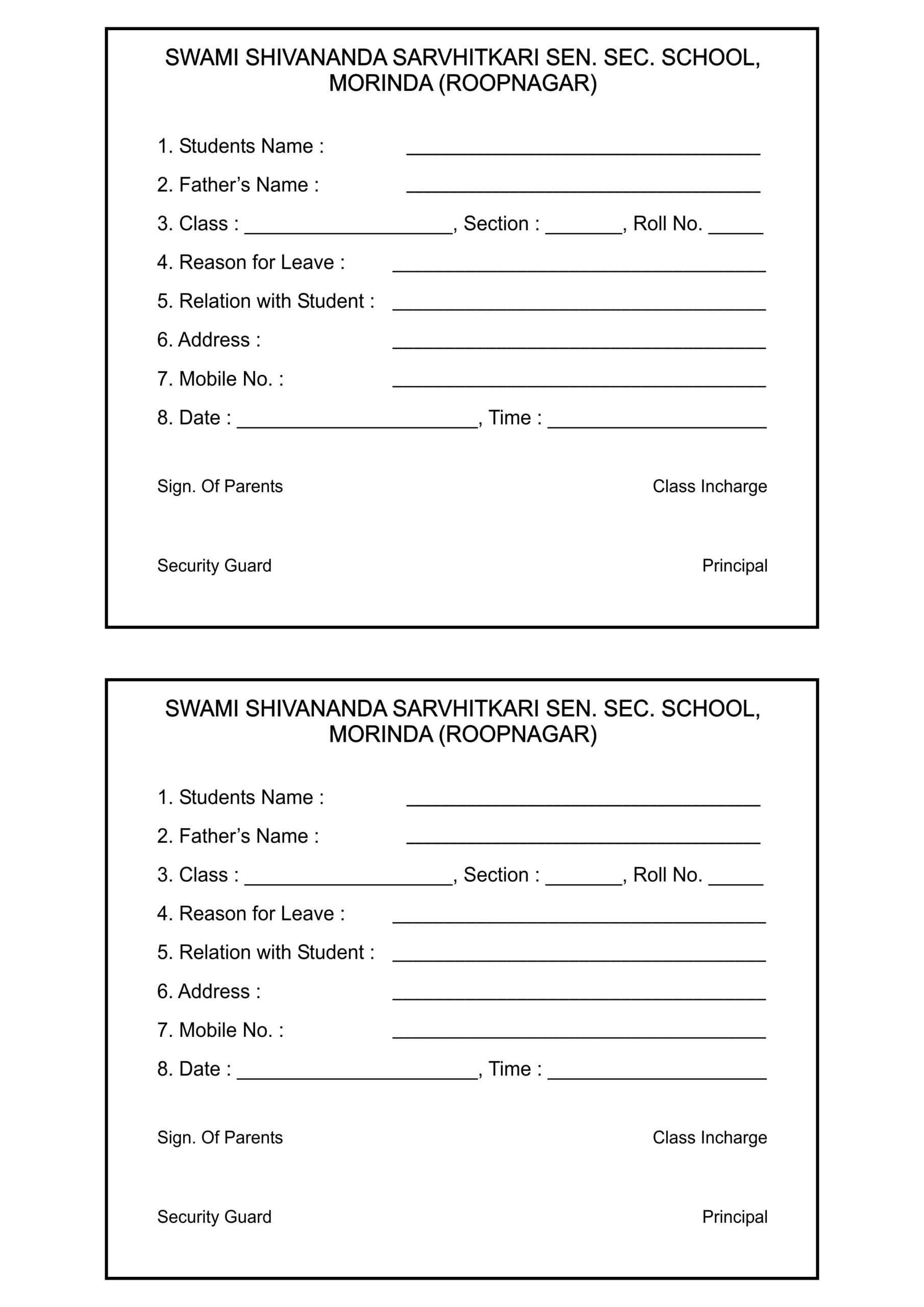 Students Leave Application Form
